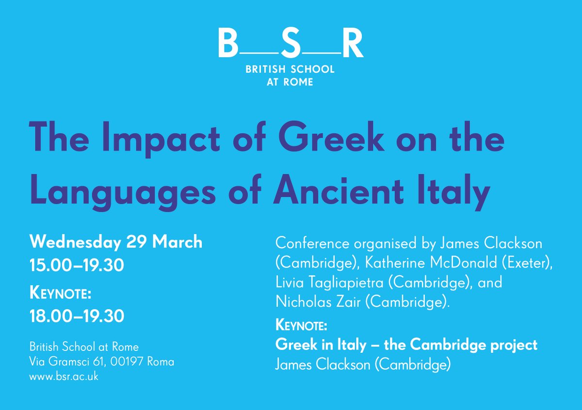 On the 29th March, the ‘Greek in Italy‘ project will be hosting a workshop entitled ‘The impact of Greek on the languages of Ancient Italy’ at the British School at Rome.